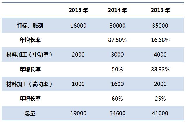 二、2013-2015年中國光纖激光器市場總量