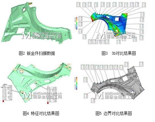 OFweek激光網(wǎng)訊:如今,激烈的市場競爭促使汽車廠家都在加緊新車型的開發(fā),以搶占市場先機,贏得豐厚利潤。由于發(fā)動機、底盤設計制造技術基本成熟,新車型主要體現(xiàn)在車身造型及電子設備上。在轎車新品種的研發(fā)過程中,車身鈑金件具有形狀復雜、結(jié)構尺寸大、精度高、表面質(zhì)量要求嚴格等特點。據(jù)統(tǒng)計目前在一種新車型開發(fā)中有40%的設計師與工程師在從事與車身鈑金件相關的工作。鈑金件質(zhì)量的好壞決定了新車型開發(fā)的成敗。這無疑對鈑金件的檢測提出了全新的要求。而傳統(tǒng)的檢具、三坐標測量機,由于自身的缺陷不能對鈑金件空間曲面形狀作出全面評價,且檢測效率低!也不能完全滿足大規(guī)模汽車生產(chǎn)的檢測需要,如何快速、精確、方便地對鈑金件進行檢測!已成為整車廠必須面對的問題。 加拿大Creaform 公司研發(fā)的Handyscan 3D 手持三維激光掃描儀為上述問題的解決提供了全新的方法。它獨創(chuàng)的自定位技術實現(xiàn)了掃描過程中工件靈活移動,確保掃描不留死角,而且它具有掃描精度高(最高可達0.04mm)、獲取點云速度快、易于操作、不受工件大小限制等特點,為汽車新品研發(fā)、零部件質(zhì)量控制及整車裝配的順利進行提供了可靠保證。 目前Handyscan 3D 手持三維激光掃描儀在汽車領域的應用主要是:一,汽車零部件型面、邊界、孔位等迅速、直觀、全面的檢測;二,汽車零部件、整車的逆向設計。本文以某在研電動車的左側(cè)圍內(nèi)板焊接總成件為研究對象,重點闡述Handyscan 3D 手持三維激光掃描儀在汽車鈑金件質(zhì)量分析中的應用。