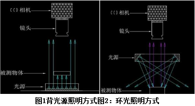 機器視覺檢測系統(tǒng)是通過光學(xué)系統(tǒng)和半導(dǎo)體傳感器實時自動獲取圖像,并通過圖像處理算法獲得必要信息的一種檢測系統(tǒng)。一般的機器視覺檢測系統(tǒng)包括照明系統(tǒng)、圖像傳感器、圖像采集卡以及圖像處理系統(tǒng)。近些年隨著高分辨率、高集成度圖像傳感器產(chǎn)業(yè)的成熟,低價格獲取高質(zhì)量標(biāo)準(zhǔn)化的圖像傳感器成為容易之事,加上計算機科學(xué)技術(shù),信息處理設(shè)備的微型化、便攜化,通過直接的“拍照”快速獲取信息的方式正逐漸深入到各行各業(yè),尤其是批量作業(yè)、危險工作環(huán)境。光源是機器視覺獲取圖像的基礎(chǔ),通過對光源的改進與設(shè)計可以高效的提取出所需目標(biāo)信息,極大地提高圖像處理和識別的效率,提高系統(tǒng)測量精度和可靠性;反之,光源的錯誤使用則會造成圖像處理復(fù)雜度提高,系統(tǒng)效率低下。因此,光源是是機器視覺獲得圖像的基礎(chǔ),是決定整個系統(tǒng)成敗的關(guān)鍵因素。 目前對于光源強度的評估都是以照度為標(biāo)準(zhǔn),隨著光源在機器視覺系統(tǒng)中重要性的提升,以及光源種類和應(yīng)用場合的豐富,單純的使用照度指標(biāo)對不同照明方式的光源進行評估時,設(shè)計出來的光源并不能滿足實際應(yīng)用的需求。基于此方面的需求,本論文提出了一種新的評估方式:背向照明應(yīng)該采用亮度進行評估,并通過實驗論證了該結(jié)論。 1.理論分析: 機器視覺中評價光源質(zhì)量的指標(biāo)有光通量、照度、亮度、色溫、顯色性、壽命等。其中,照度、亮度都是衡量光源強度的指標(biāo),是兩個既關(guān)聯(lián)又不同的物理量。亮度:指的是人在看光源時,眼睛感覺到的光亮度,更側(cè)重的是人的感受程度。我們常說一個地方很亮而不會說很“照”,就是人的感受,指的就是這個地方的物品被照射后,反射到我們眼中的光線相對多。指定方向上光源光通量的多少是決定性因素,指定方向上光源的光通量多,亮度就高。照度:指的是光源照射到樣品上,單位被照射面積上的光通量,指的是有多少能量發(fā)射到被照的物品表面。單位被照射面積上的光通量多,照度就高。兩者的關(guān)聯(lián)是影響光源亮度及照度高低的物理量是共同的,即:光通量。不同點是:影響光源亮度的光通量,是光源表面指定方向輻射出來的光通量的多少;影響光源照度的光通量,是光源輻射到樣品上的光通量的多少。兩者表述不同,受外界影響因素也不同。同一只光源,指定方向上光源表面輻射出來的光通量、與光源輻射到樣品上的光通量是不相等的。特別說明:光源的亮度視覺感,有時受色溫影響較大。在光通量相同的光源中,色溫高的光源會產(chǎn)生亮度高的錯誤的視覺感。這種“高亮度”光源,光效并不一定比其它光源高,只是一種刺眼的“虛假亮”。 亮度指進入人眼中被感受到的光線強度,照度是指被照射面得到的光的數(shù)量,從機器視覺應(yīng)用的照明方式來分析,背光源照明方式是相機接收到的背光源直接射入鏡頭的光線,如下圖1: