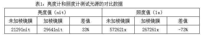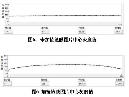 該膜材通過內(nèi)部微棱鏡結(jié)構(gòu)改變光的發(fā)散角度,將光收集到正前方從而達到提高該光源正方向的能量利用率。實驗使用的照度計為柯尼卡美能達CL-200,亮度計為CS-160。相機為東芝CSFS20BC2,鏡頭為computar 2514。分別使用照度計,亮度計測試該背光源不加棱鏡膜和加入棱鏡膜后的照度,亮度并與相機拍攝出來圖片灰度值進行對比。