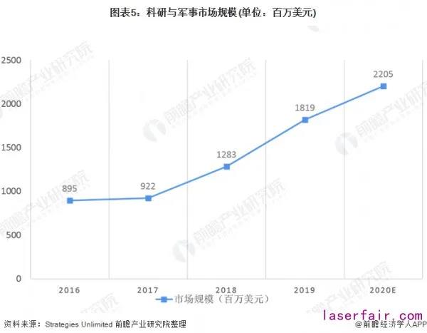包括用于基礎(chǔ)研發(fā)的激光器,如大學(xué)和國家實(shí)驗(yàn)室;以及用于新興和現(xiàn)有軍事應(yīng)用的激光器,如測距儀、照明器、紅外對抗和定向能武器研究。