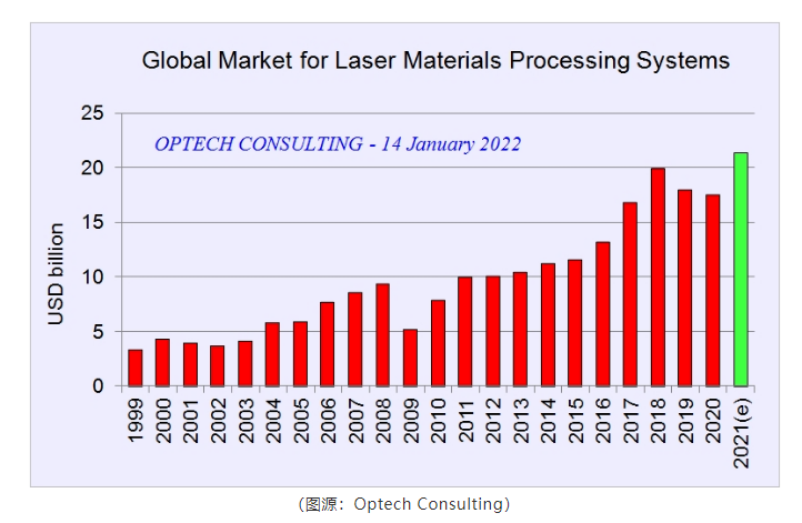 市場研究公司Optech Consulting的一項(xiàng)最新調(diào)研報(bào)告顯示,盡管受到新冠疫情的持續(xù)影響,去年全球工業(yè)激光系統(tǒng)市場仍然顯示出強(qiáng)勁的增長勢(shì)頭。